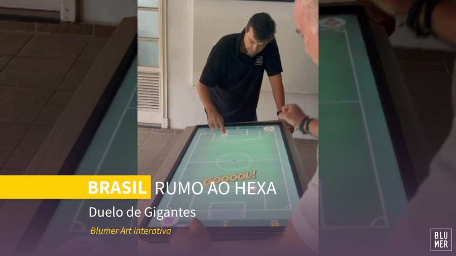 A Copa é sobre movimento, emoção e decisão em segundos. Pensando nisso, a Blumer desenvolveu tecnologias interativas que transformam esse clima em experiências de participação real.