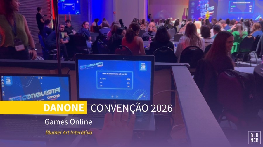 🥛 Na convenção 2026 da Danone, a Blumer participou com um super game online, onde as pessoas presentes interagiam em tempo real com a palestra corporativa.