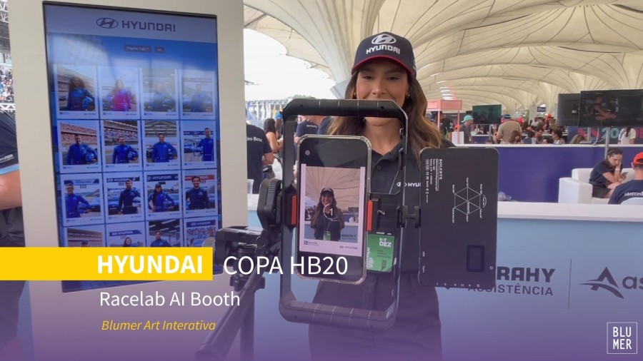 📸 Esse ano a Blumer levou para o estande da Hyundai uma interatividade inédita, o Racelab AI Booth. Por meio de inteligencia artificial, as pessoas eram fotografadas, e imediatamente a IA colocava as mesmas na arquibancada, na pista ou no box do Autódromo de Interlagos. Ao lado um totem mostrava as fotos em tempo real, e as pessoas através de um QR Code, baixavam a sua foto direto no celular.
