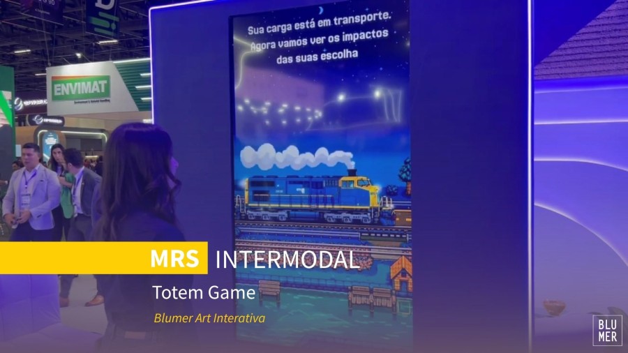 Na Intermodal 2026, criamos para a MRS um game interativo em totem que convida o público a entrar na dinâmica da marca de forma ativa.